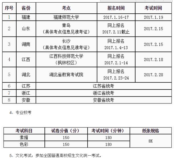 2、校考省份专业成绩:报考考生须根据所在省的相关规定分别参加该省美术专业统考和我校专业校考,成绩均达到合格以上。