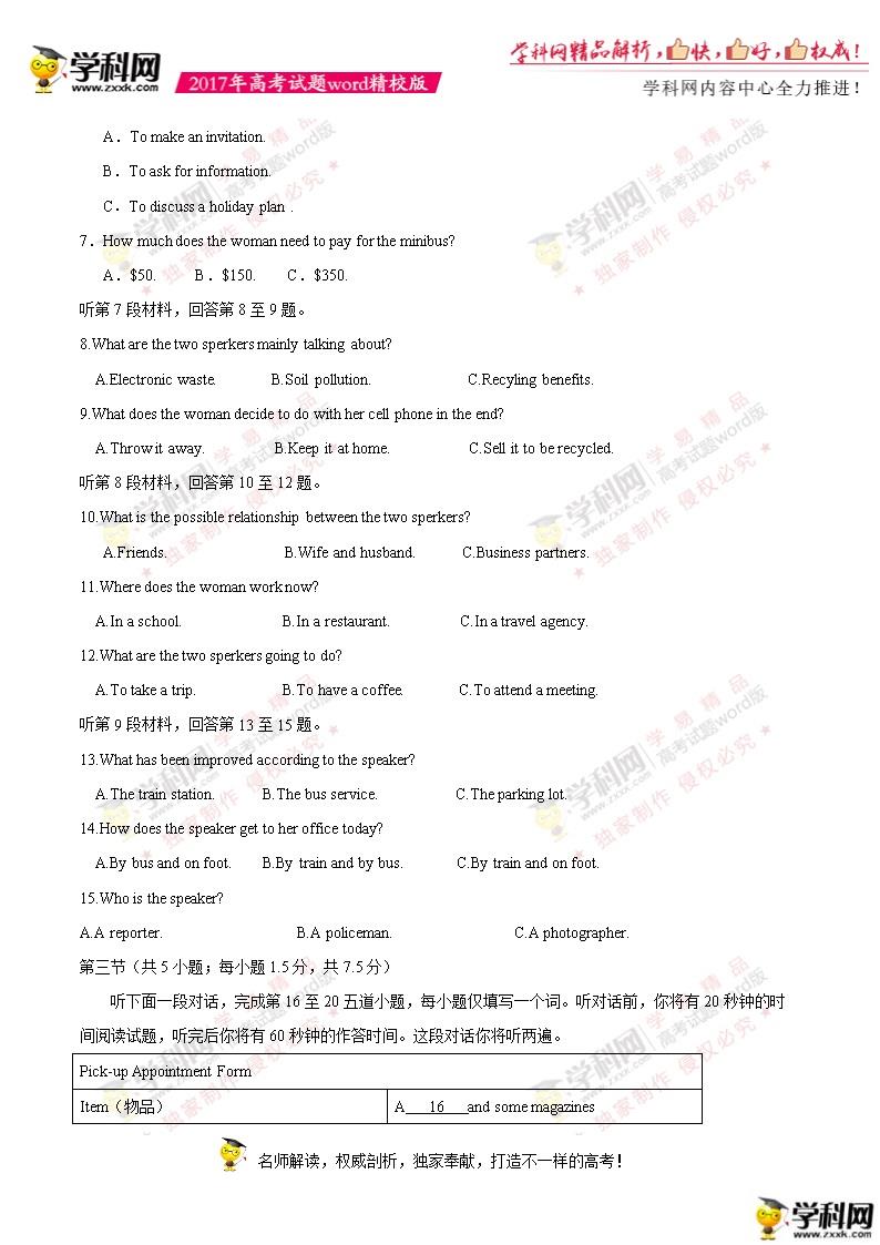 2017年北京高考英语真题及答案(2)