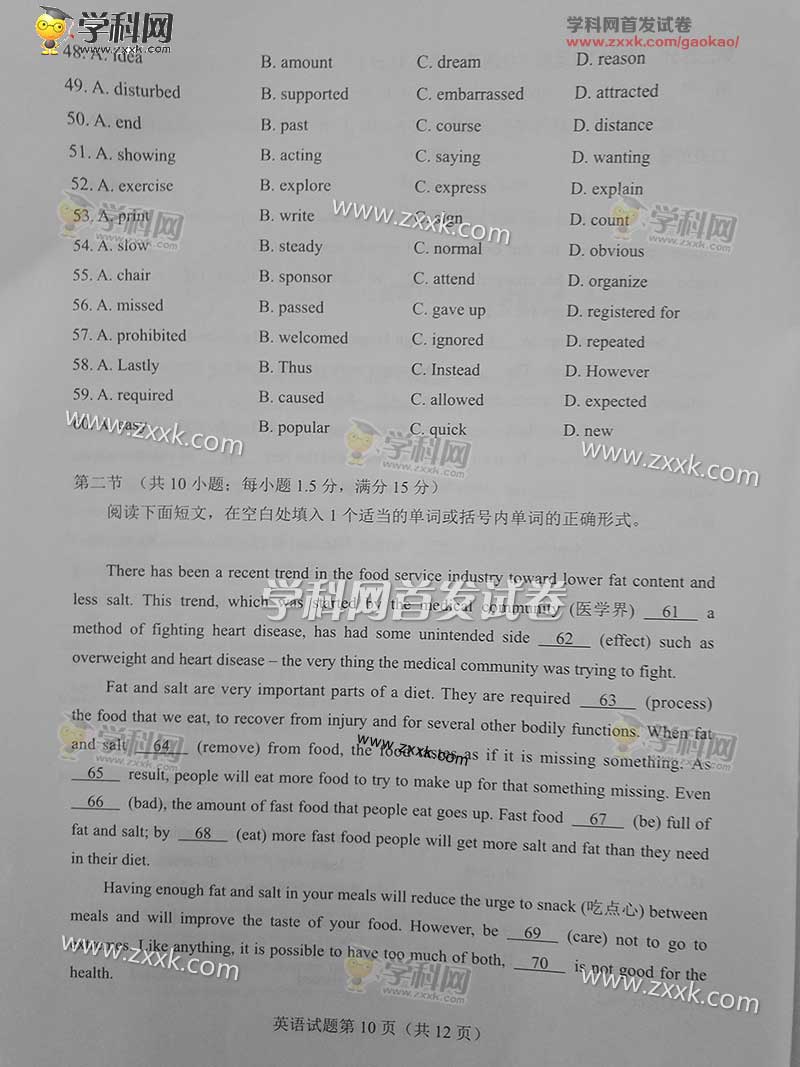 2017年全国卷1高考英语真题及答案(10)