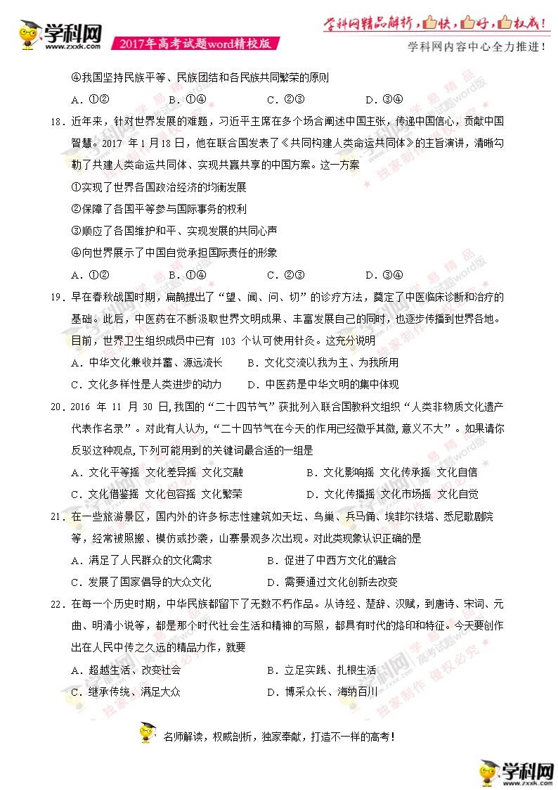 更多2017年江苏高考政治真题及答案、江苏高考政治答案、江苏高考政治试题、高考志愿填报、高考成绩查询、高考分数线等信息,请及时关注育路高考网!