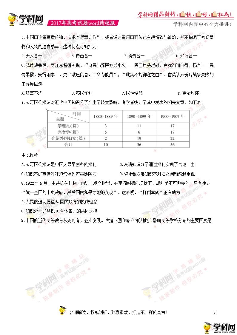 2017年江苏高考历史真题及答案(2)