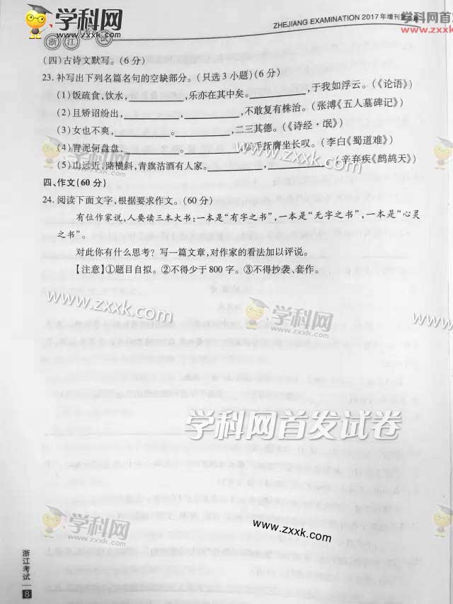 2017年浙江高考语文真题及答案(8)