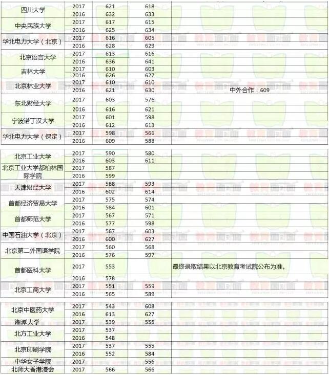 2017年40余所在京招生高校一本提档线火热出炉(2)