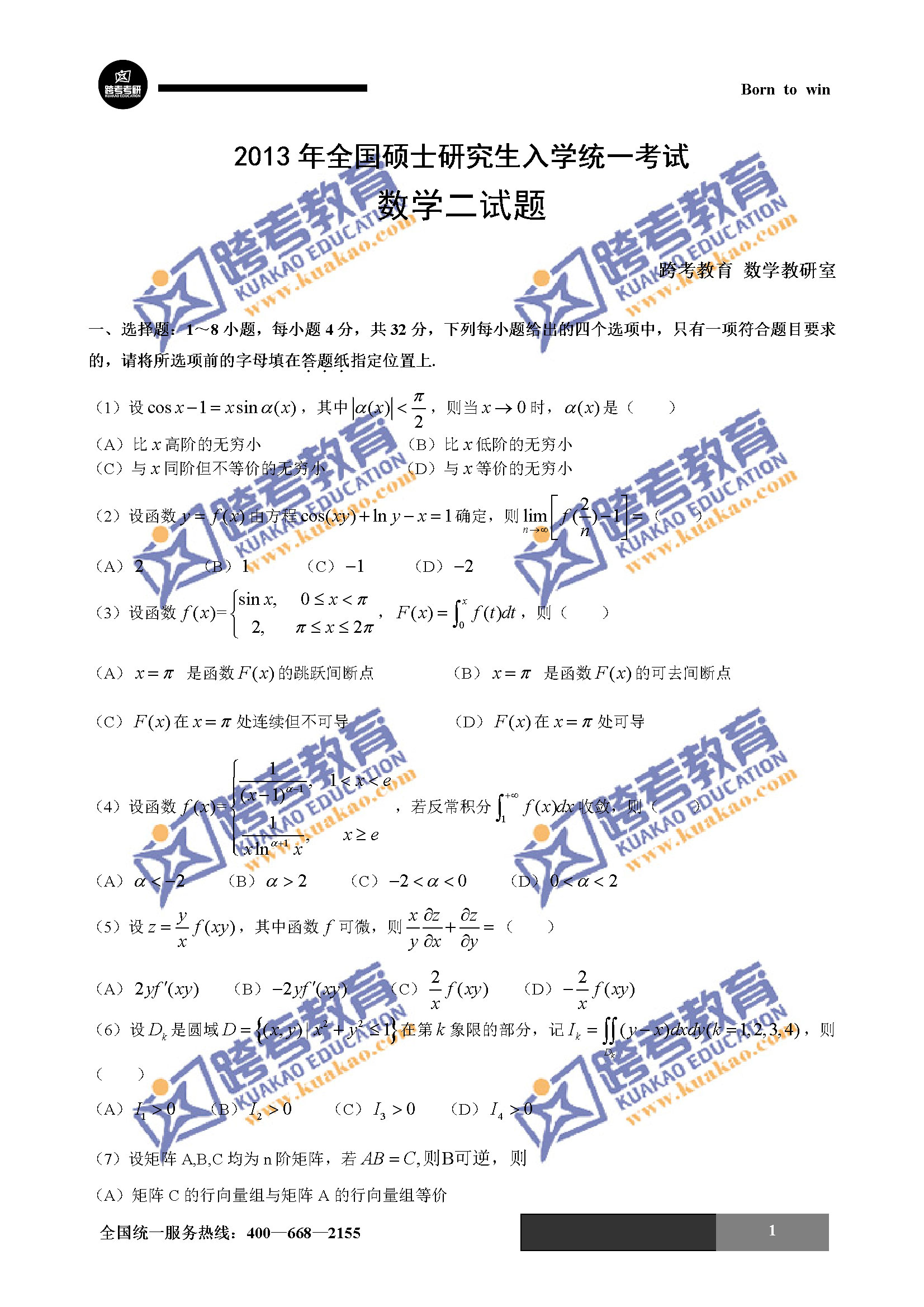 育路教育网考研频道1月6日考后第一时间公布2013年考研数学真题,敬请关注!以下为2012考研数学真题......