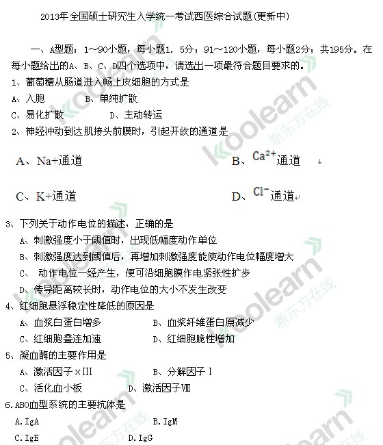 2013考研西医综合考研真题