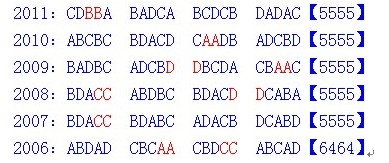 附图:历年完形填空ABCD答案分布