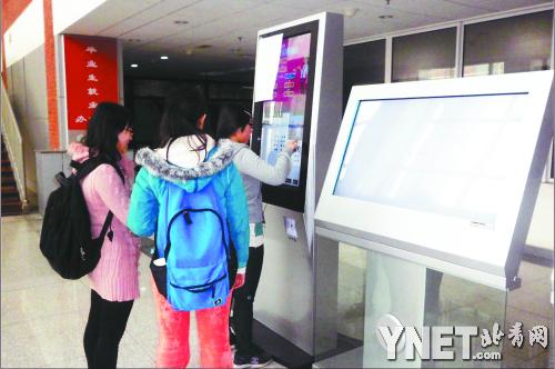 在北师大图书馆里,记者也看到了电脑管理系统,只要学生用校园卡在阅览室门口的机器上刷一下,屏幕上就会自动跳出阅览室空闲的座位数量,学生可以选择让系统自动派发座位,也可通过手动模式,像在电影院选座位一样,看着模拟图在触屏上自选座位。