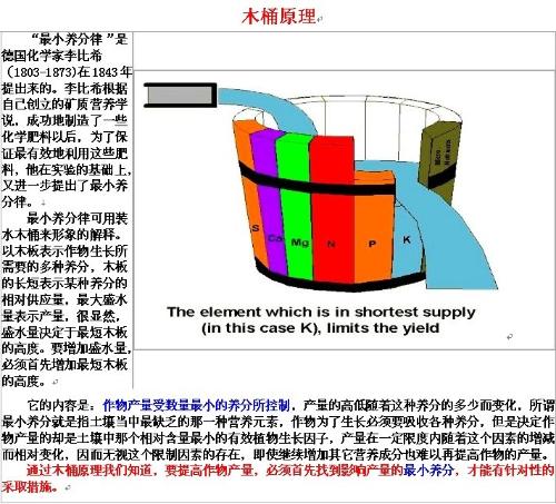 一只木桶能够装多少水,取决于这个木桶中比较短的一块板的长度,而不是比较长的那块。这比较短的一块木桶板决定它的容量和储水的高度。
