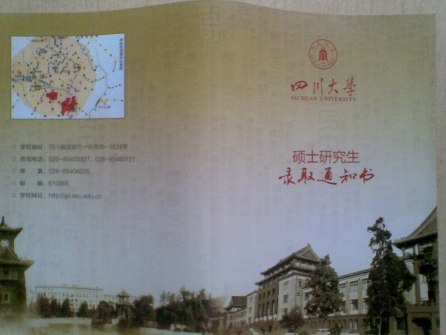 我们特此整理了研招院校的录取通知书一览,供考生朋友们提前目睹录取通知书的真面貌,下图为四川大学硕士研究生录取通知书: