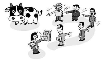 When the issue of poisonous milk powder gains an overwhelming focus from the public, what are these malefactors doing? As we can see from the depiction, enterprise, milk station, milk cow and even grass are trying to find someone scapegoating for this credit crisis, in my view point, that’s nothing to do with the credit but the problem of responsibility.