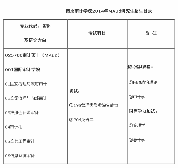以下是为考生整理的2014年南京审计学院研究生招生专业目录,供大家参阅: