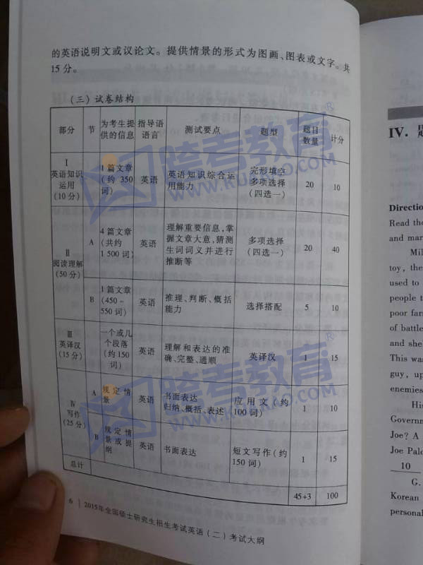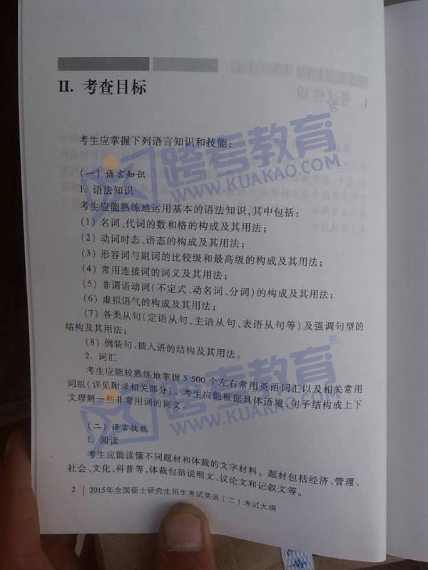 2015考研英语二考试大纲(原版) 已经公布了,详情如下: