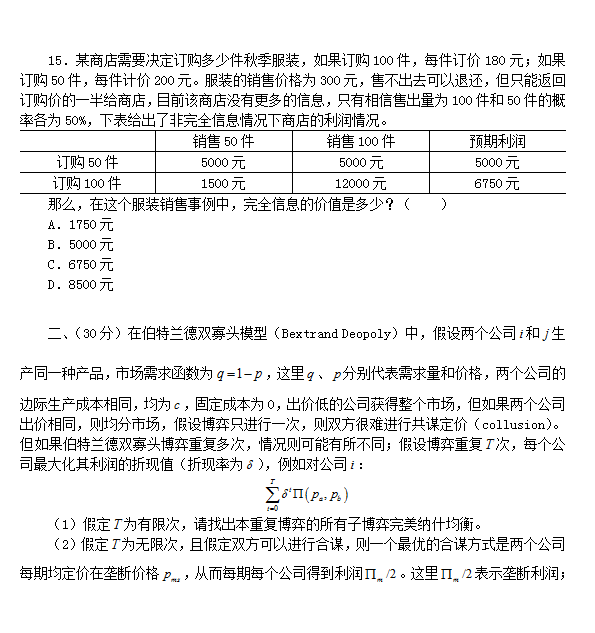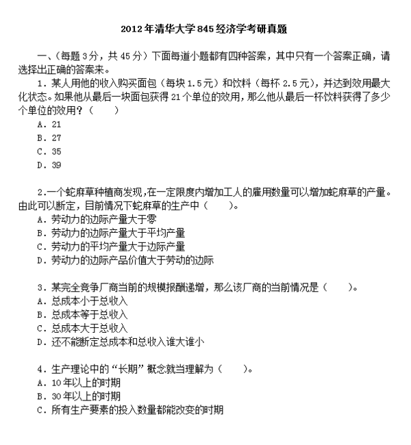 2012年清华大学845经济学考研真题