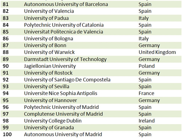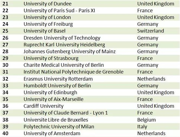 附录:路透社“TOP100欧洲比较具创新力大学榜单”