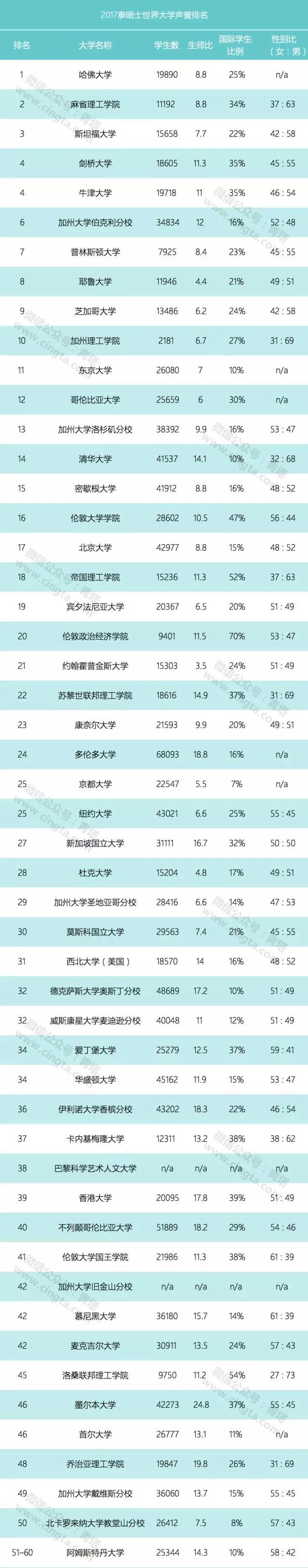 世界大学声誉排行榜是THE在全球范围内,利用联合国数据作为引导,甄选自然科学、社会科学等多领域经验丰富、发表过论文的专家进行问卷调查,根据学校被专家们提及的次数计分。本次完整版榜单如下吧:
