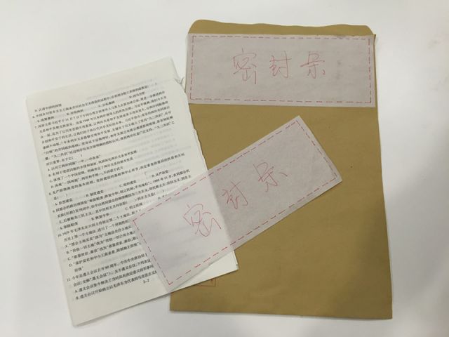 注意:里面的密封条和外面的是不一样的,外面的密封条是红色字体,里面的是蓝黑色的字体。密封条的纸质特别轻,所以一定要放好,建议拿出试卷之后把密封条继续放在档案袋里面。