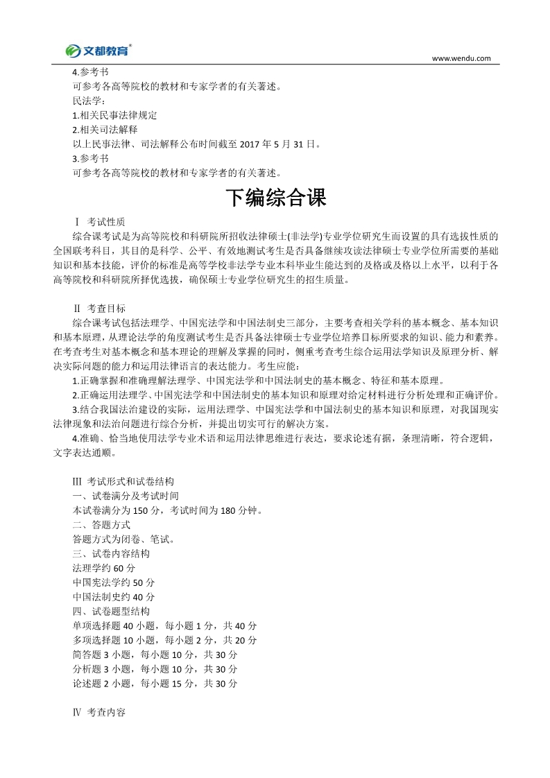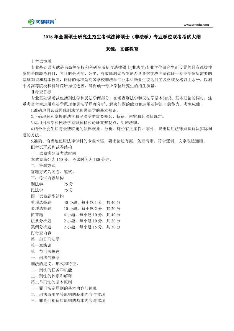 我们搜集整理了2018年考研法律硕士(非法学)考试大纲原文,供大家参考。