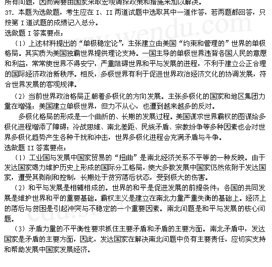 2003年全国硕士研究生入学统一考试政治理论试题答案