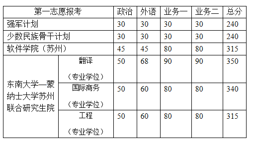 2015年东南大学考研复试分数线公布,详情如下: