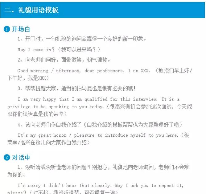 初试过关斩将的你,终于迎来了复试。但是对于习惯了哑巴英语的研友们们来说,英语面试成为了胜利之路上的荆棘。不要怕,下面为大家整理了英语面试万能模板及常见问题解答。包括复试注意事项、礼貌用语模板、自我介绍模板、常见问题解答等。