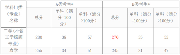 也就是说,您的考研总成绩要达到拟调剂单位所在地区的工学(而不是农学)分数线,且单科分数符合成绩要求,才有调剂资格。如果跨学科门类进行调剂,即使专业名称一样,也不能按拟调剂专业的成绩要求来判断是否符合调剂资格。以2015年为例,工学总分要求A类考生(拟调剂单位在一区)为280分,B类考生(拟调剂单位在二区)为270分,故考生总成绩269分未达到“国家线”要求,不在调剂系统适用范围内。