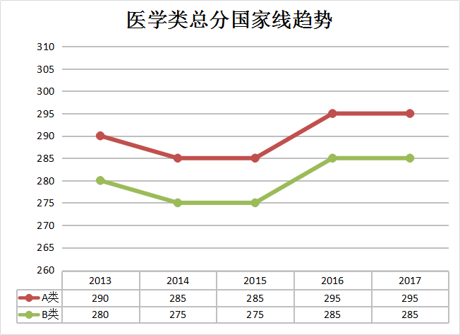 三、医学大科(满分>100分)国家线走势