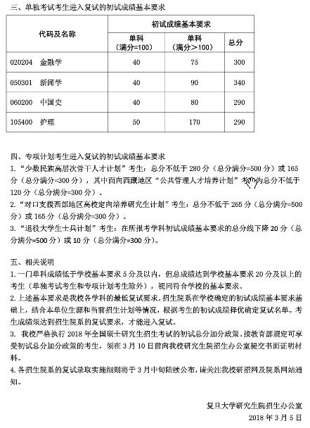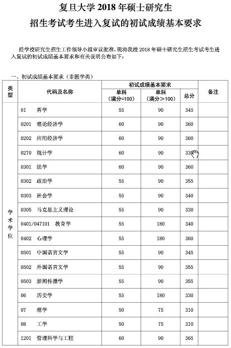从复旦大学网站获悉,2018年复旦大学考研复试分数线已经公布,详情介绍如下: