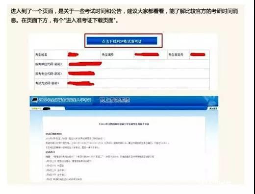 其次,进入个人页面,在页面的下方,有一个进入准考证下载的页面。点击进入,就会看到一张个人信息表,一定要进行核对。在顶部有个‘点击下载PDF格式准考证’。