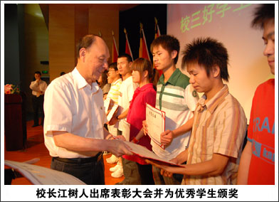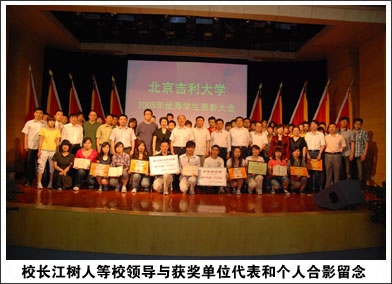 随后,北京吉利大学校长兼校党委书记江树人教授,党委常务副书记张国庆,校党委副书记刘艳先后为北京吉利大学2008年度校级三好学生标兵、校级优秀学生干部代表、校级优秀班集体代表;荣获市级荣誉的学生代表、区级荣誉的学生代表、校级荣誉的学生代表;北京吉利大学2008年国家奖学金,国家励志奖学金获得者代表、“百日文明教育活动”先进集体和个人代表、首都教育系统奥运工作先进集体获得者、北京吉利大学2008年心理教育工作先进社团和个人代表分别颁奖。