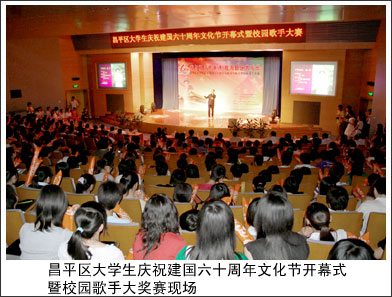 5月22日,“昌平大学生庆祝建国六十周年文化节开幕式暨校园歌手大赛”在北京吉利大学国际报告厅隆重举行。来自昌平区的18所高校汇聚一堂。北京学生会联合会执行主席李伟、昌平区委书记范佂、区文化委副主任李彦樵、昌平团区委副书记李文博出席大赛。北京吉利大学党委副书记刘艳、教务长姜国忠、学生处处长庄小健及各学院、职能处室领导出席。大赛评委由来自昌平区的一些领导担任。