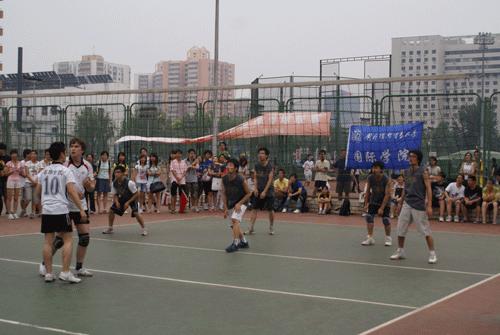 5月27日晚6:30,由对外经贸大学体育部、校学生会体育部主办,排球协会协办的对外经贸大学排球联赛在体育场迎来了最后一场比赛——金融学院与国际学院的冠军争夺赛。