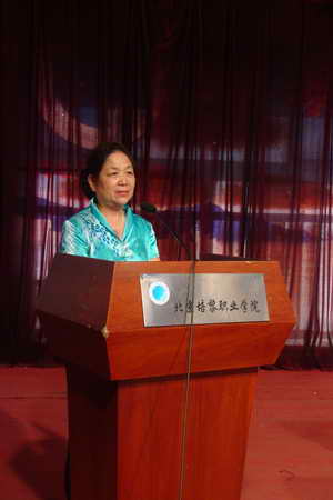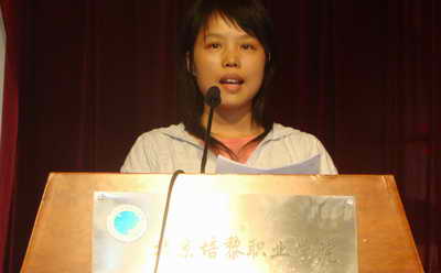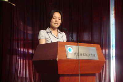 第四个发言的是北京培黎职业学院工商管理系的副主任白静,她发言题目是《努力贯彻校训,打造培黎特色》。她说到:职业教育是国民教育体系的重要组成部分,是最直接、最有效的为经济社会发展服务的教育,是把科学技术转化为现实生产力的桥梁。职业教育是尊重人的创造性和创新精神,促进人的全面发展、贯穿人的终生教育,是面向人人、服务人人的教育。尤其是现在处于一个以能力为本位,而并非以学历文凭为衡量人才标准的社会里,职业教育是最具现实意义的教育。它是开放的:即在学校学习,也在职场学习;既有理论传授,更注重实践训练;工作与学习没有界限,入学与就业贯通;在“入口”上,它面向所有的人;在“出口”上,它四通八达;升学有路,就业有岗,创业有优势。她认为,北京培黎职业学院职业教育的特色,就要办“开门”式的,要提高人才培养的适用性,要强化市场意识,要以企业和社会需求为导向,要不断拓展职业院校的服务功能,要立足于不同人群的需求,要扩大招生层次和招生范围,要坚持办好春蕾班等,只有这样才能办好符合时代要求的有培黎特色的职业教育。