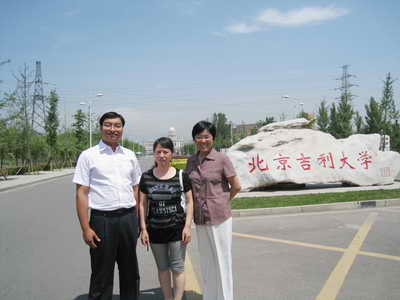 图一、考察组在吉利大学校门前留影
