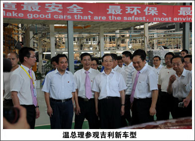 6月15日讯 两天前,即6月13日上午,中共中央政治局常委、国务院总理温家宝在视察吉利汽车湖南湘潭制造基地时指出,吉利品牌,国家要支持,企业要努力。