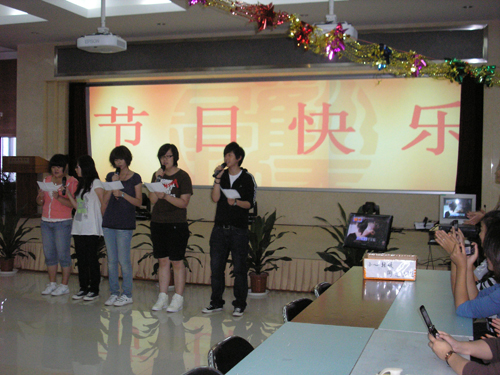 2009年9月21日下午,北京城市学院语言学部在校本部多功能厅为35名新疆少数民族的同学举办了开斋节联欢会。学部党支部书记范玲、学生科负责人张苹、旅游教研室焦玄、各班班主任老师以及许多汉族同学都参加了此次活动,并参与节目演出,为同学们献上了衷心的祝福。