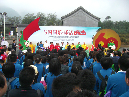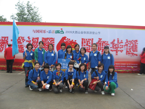 2009年9月26日,北京城市学院语言学部09级旅游管理专业百名学生在教研室老师的带领下参加了由海淀区人民政府与北京市旅游局共同举办的“与国同乐•乐活西山——大西山金秋旅游登山节”的开幕式暨登山活动。