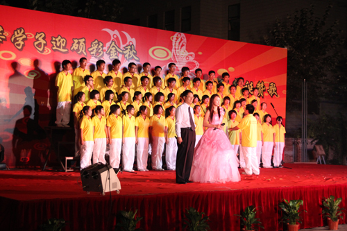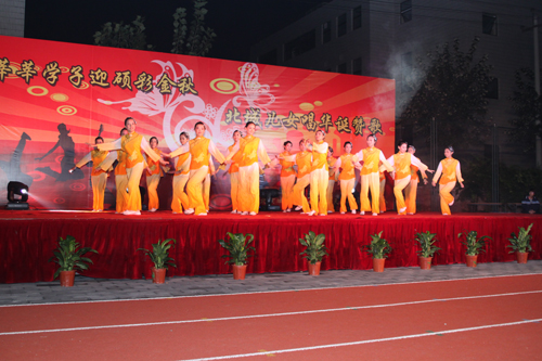 经过师生的积极策划和紧张筹备,9月27日晚6点半,北京城市学院航天城校区“莘莘学子迎硕彩金秋 北城儿女唱华诞赞歌”2009年迎新晚会以热烈的开场舞《大地飞歌》拉开帷幕,几千名师生在校区新操场一同观看演出。