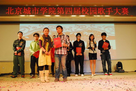北京城市学院第四届校园歌手大赛近日圆满落幕。经过激烈角逐,信息学部的邢硕、经管学部的魏颐华和吕晓龙、语言学部的程诗琪和技术学部的小天等几位同学分获此次大赛的一、二、三等奖,同时艺术学部的刘通获得最具潜力奖、软件学部的张韬获得最具人气奖、现代学部的李梦玮获得最佳台风奖。