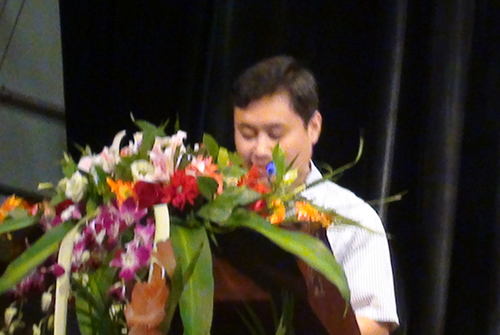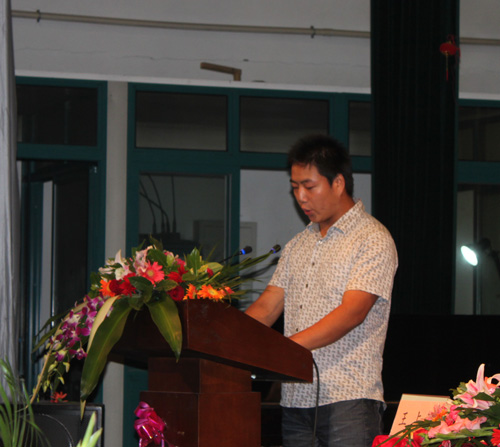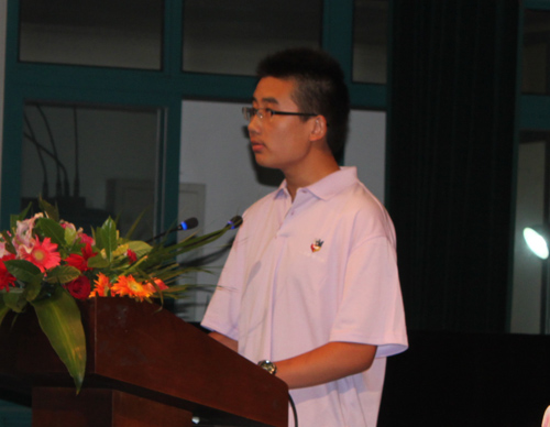 10级疯狂英语专业同学陈俊代表新生发言,他引用了李阳老师的经典名言: