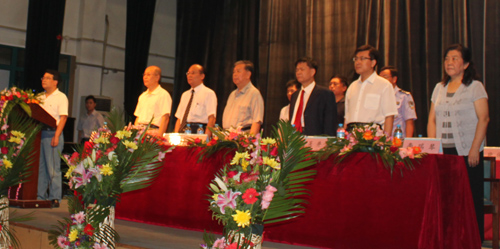 当庄严的国歌奏响时,北京翻译学院院办主任许兆江宣布开学典礼正式开始