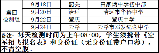 广东2016年各地级市空军招飞初选检测地点