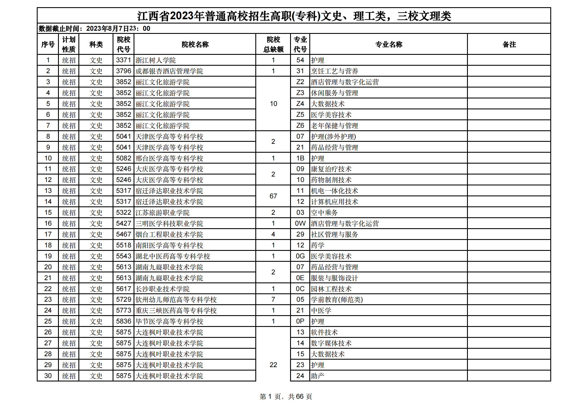 (1)2023江西高职专科批第一次征集志愿学校名单