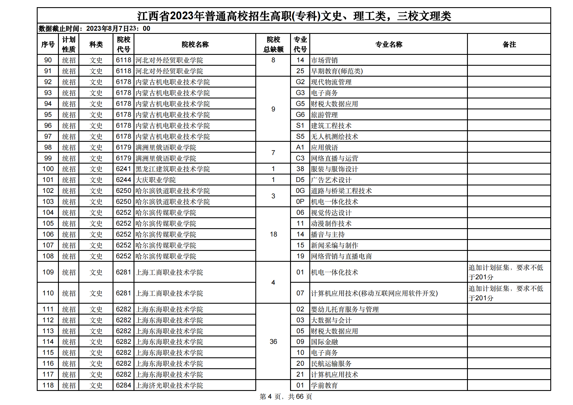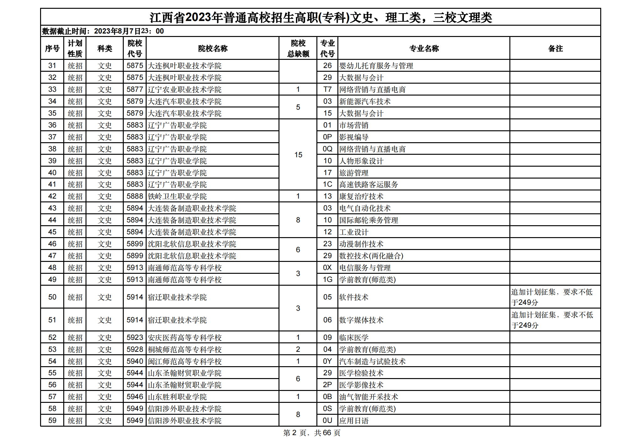 包含萍乡卫生职业学院(现代家政服务与管理),景德镇陶瓷职业技术学院(陶瓷制造技术与工艺),赣州师范高等专科学校(统计与大数据分析),江西卫生职业学院(助产)等补录专科院校及专业。