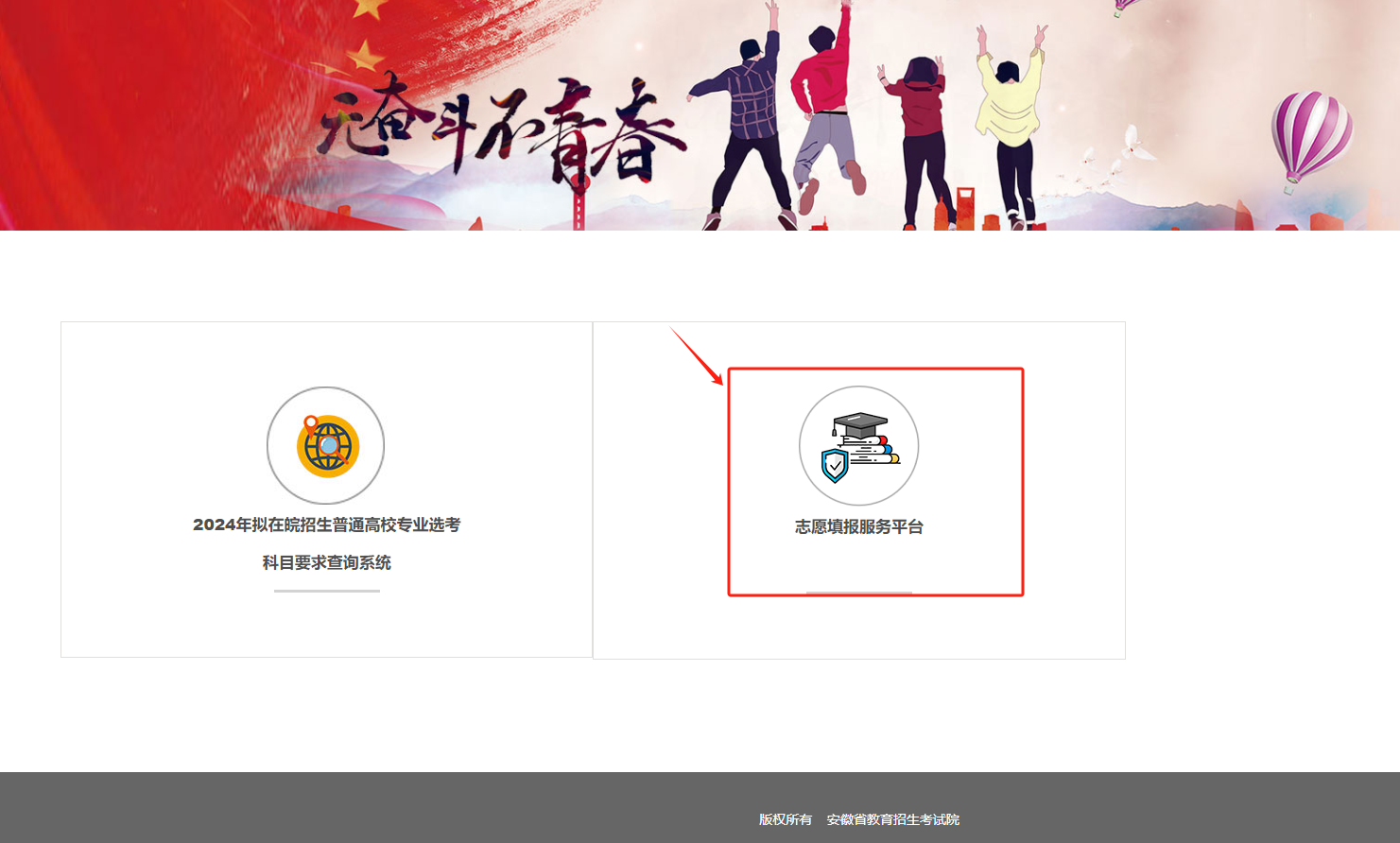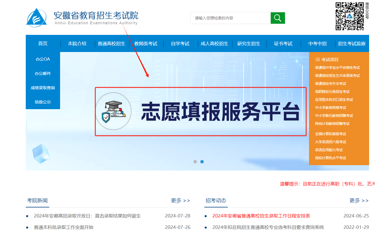 1、在填报征集志愿期间,登录安徽省教育招生考试院网站;
