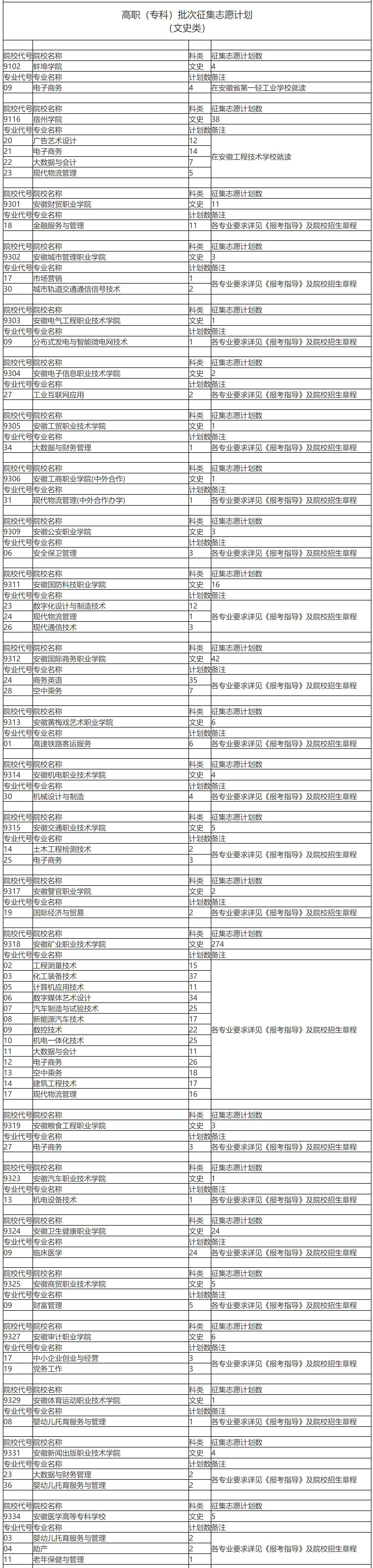 2023年安徽专科批补录院校完整名单可点击对应科类进行查看: