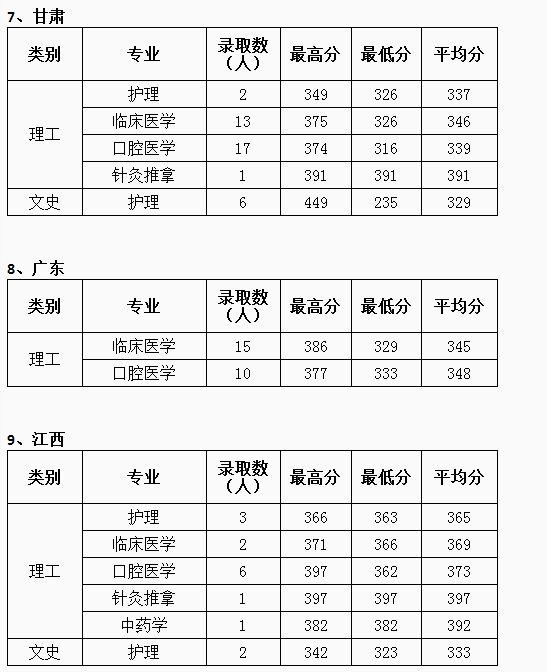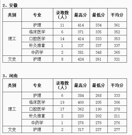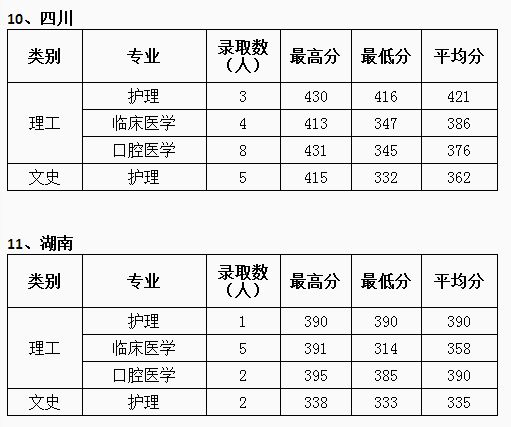 2016年省外高考录取分数线