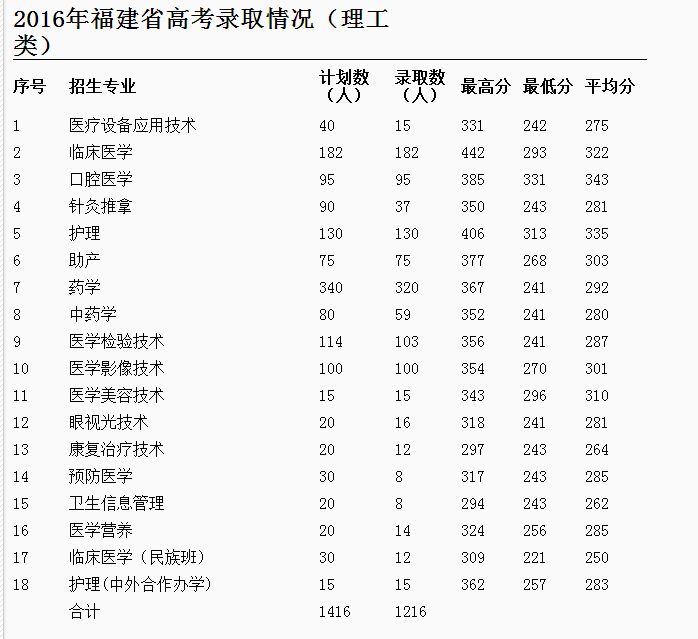 福建卫生职业技术学院2017年招生录取分数线