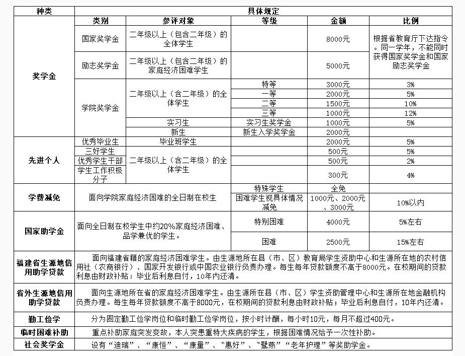 福建卫生职业技术学院学生资助体系简介