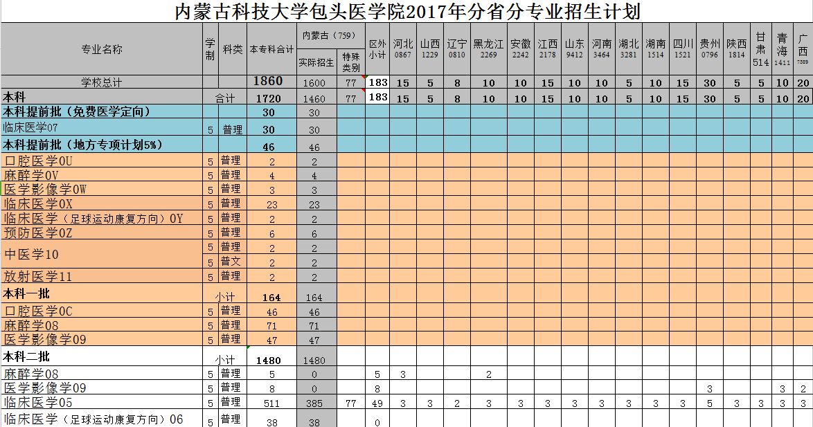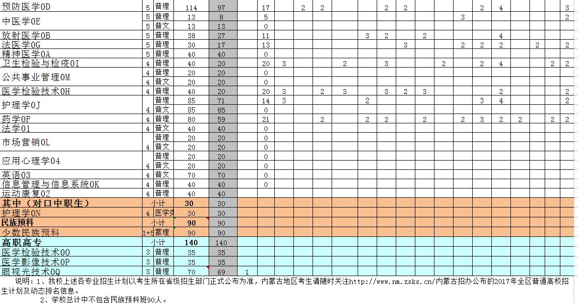 包头医学院2017年招生简章及计划