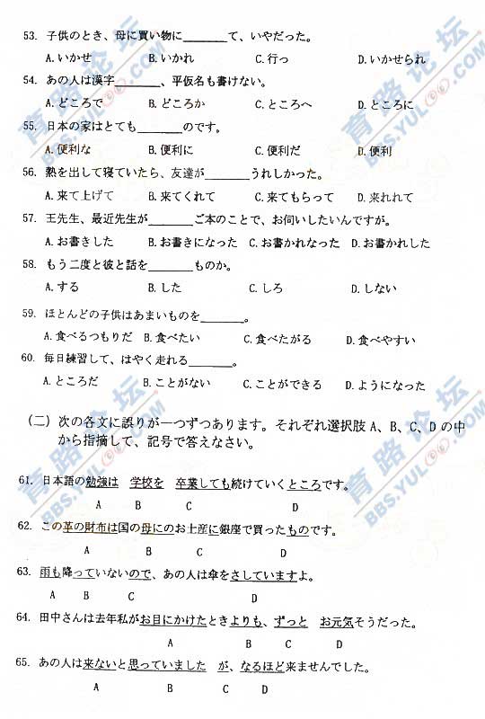 2008年成人高考专起点日语真题及答案